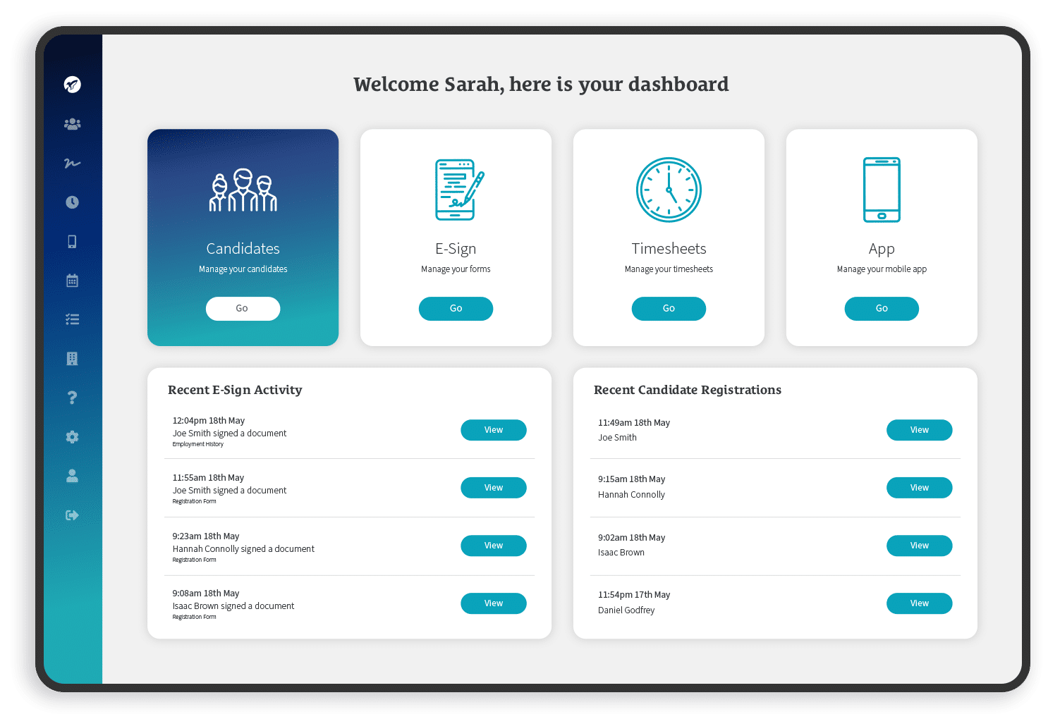 Our portal for easy approving of timesheets and viewing upcoming booked shifts